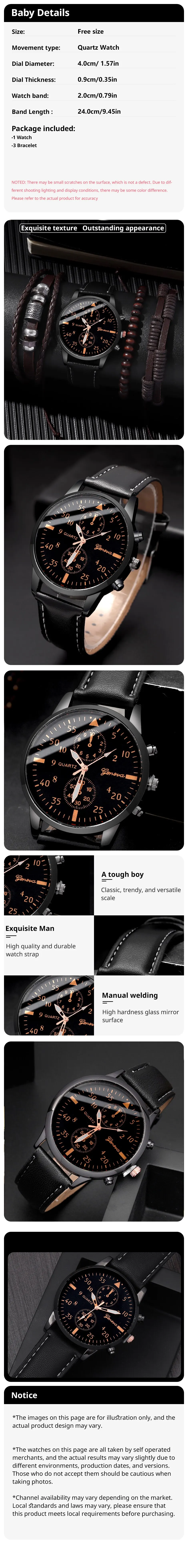 4pcs Set Men Watches Luxury Fashion Design Leather Quartz Men's Watch