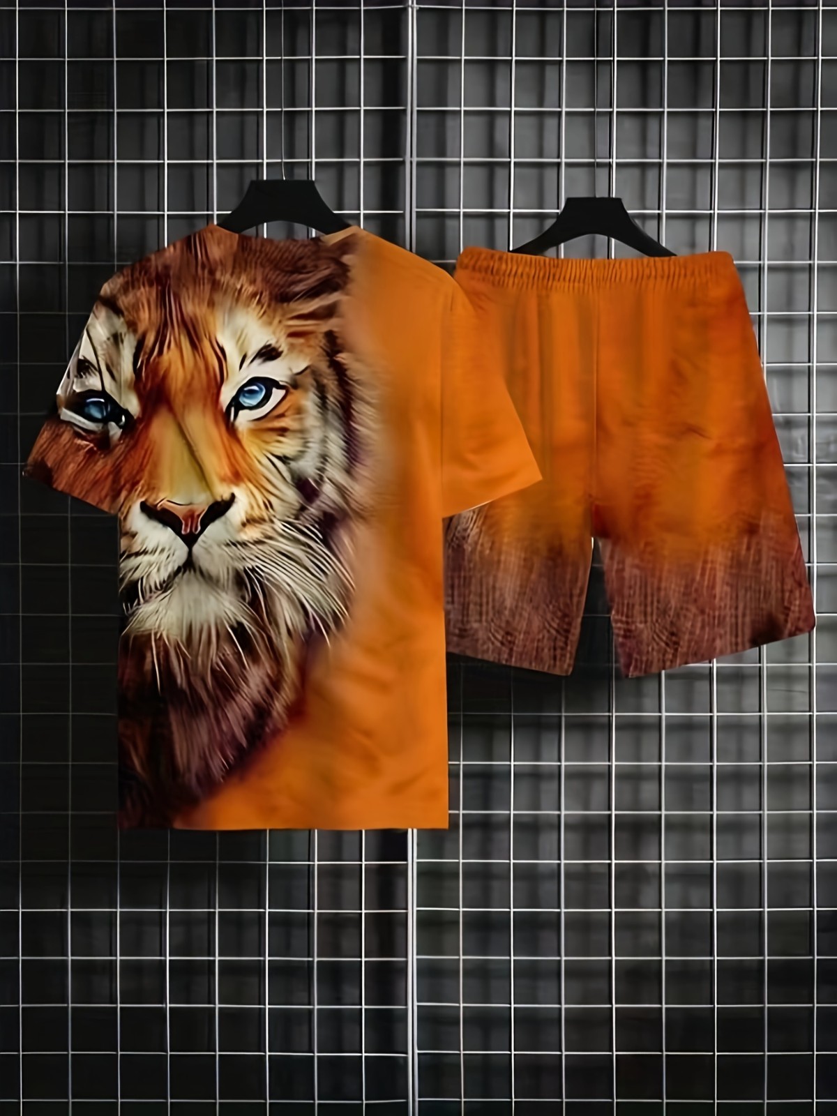 1*Men's 3D Digital Print Tiger T-Shirt 2-Pack