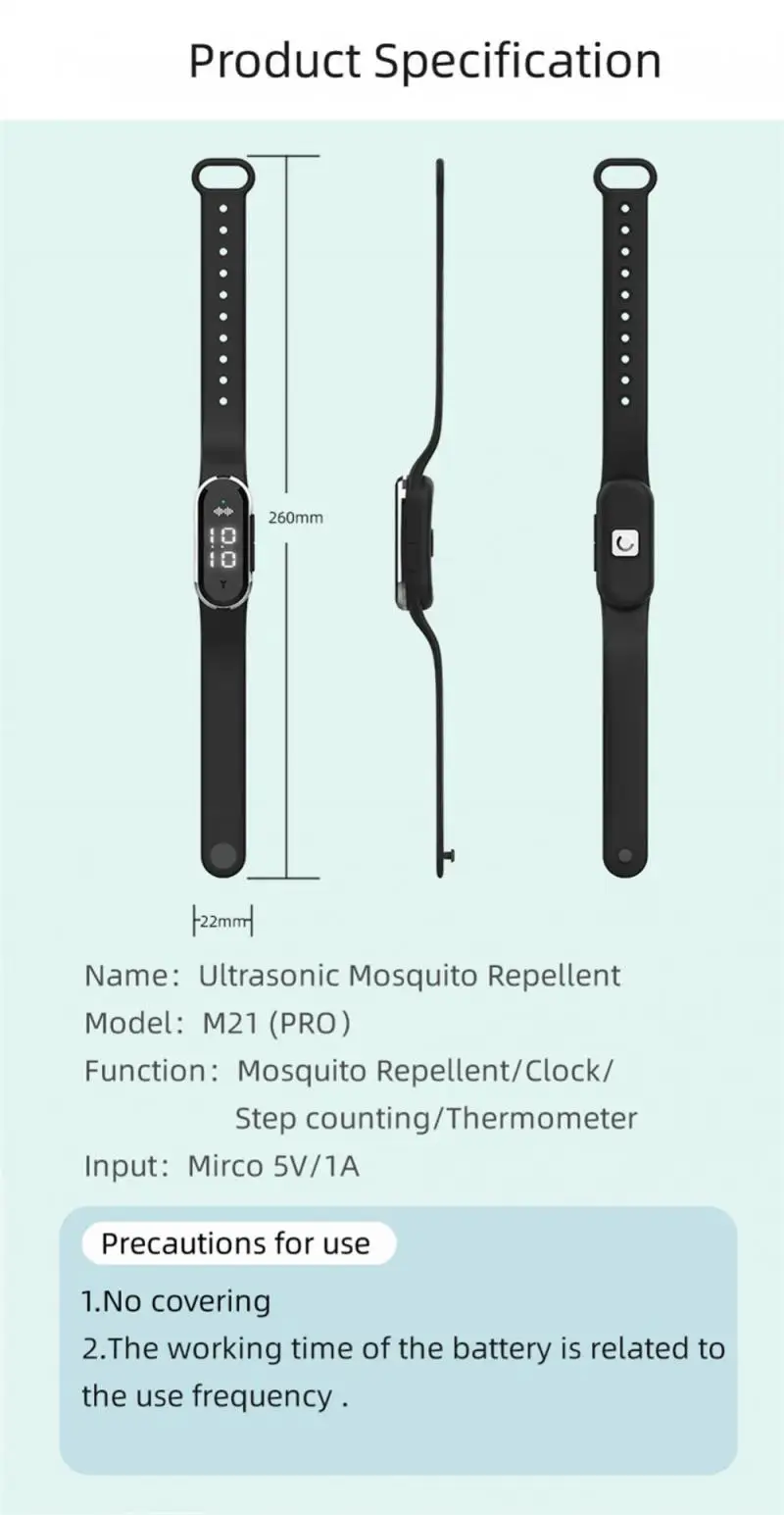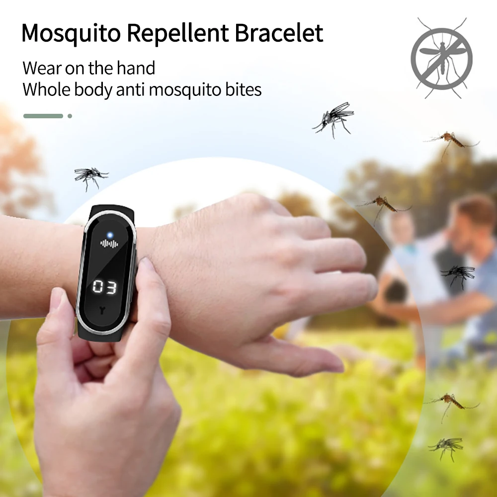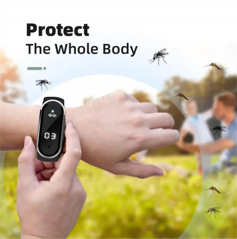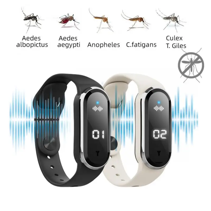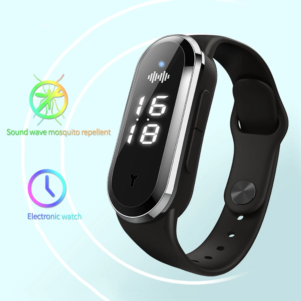 Ultrasonic Anti Mosquitoes Wrist Band Indoor Outdoor Repeller Bracelet Anti Static Electricity USB Charging Smart Watch Clock