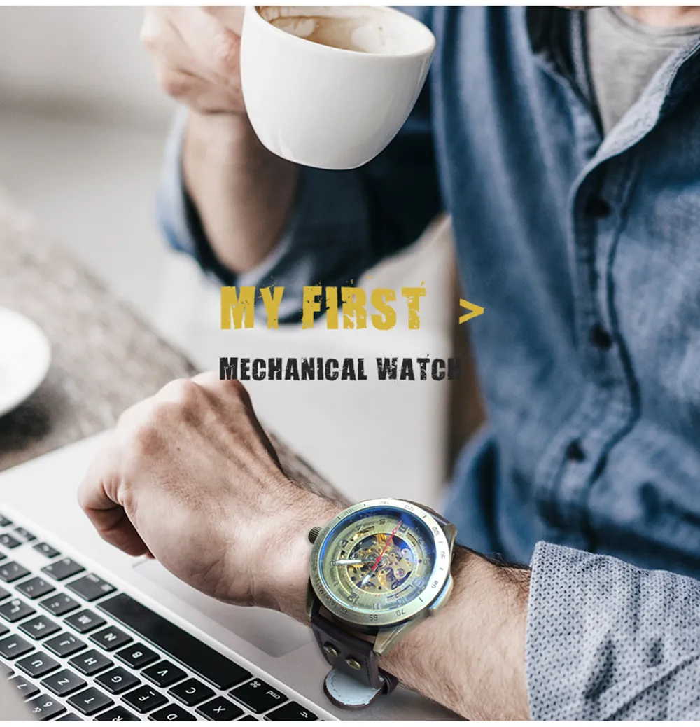 Luxury Retro Bronze Sapphire Mirror Automatic Mechanical Watch