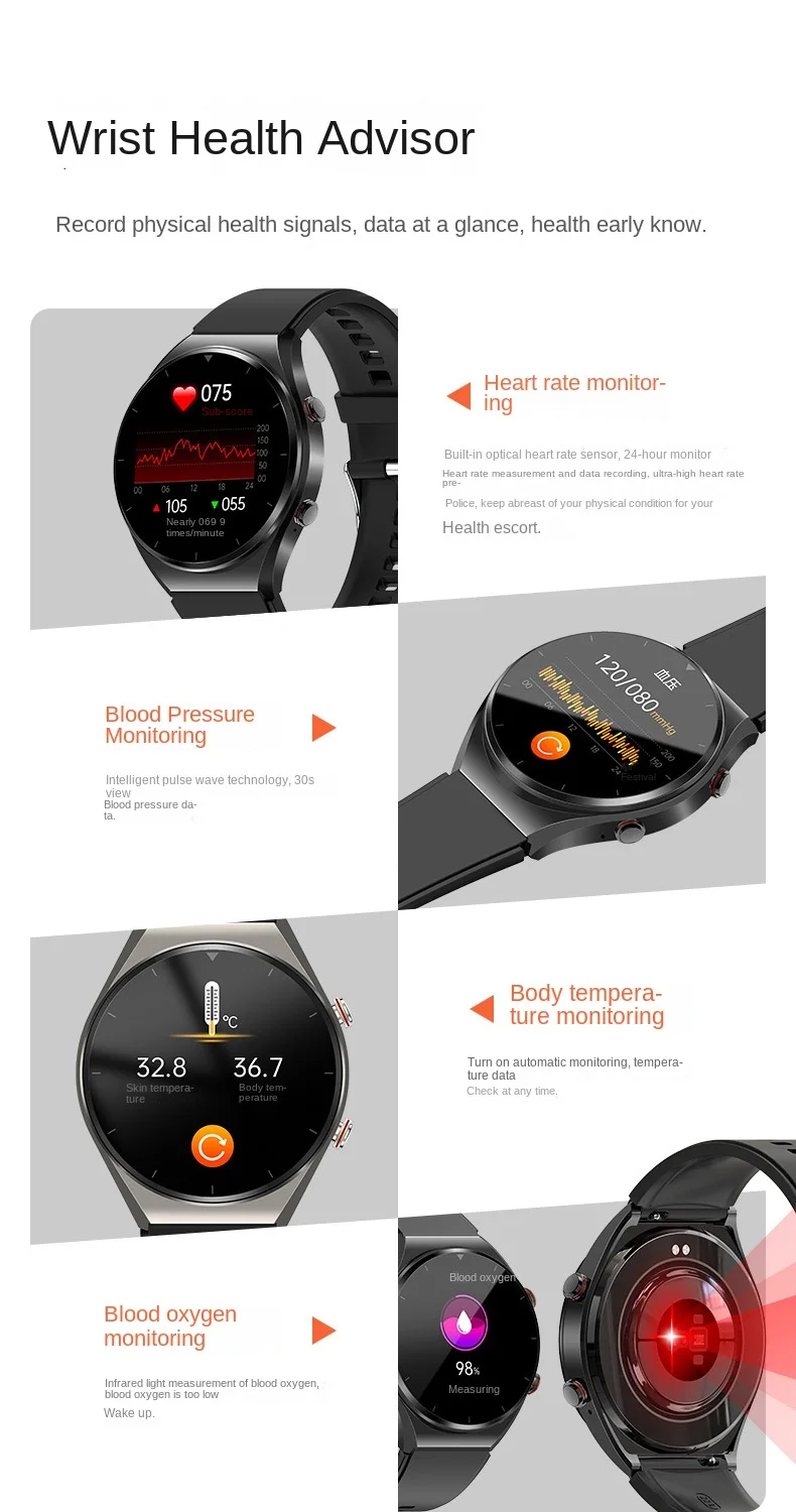 Painless Blood Glucose & Oxygen Monitoring Smart Bluetooth Health Watch